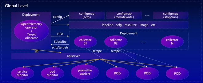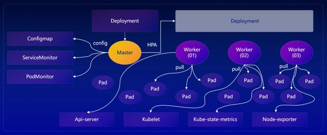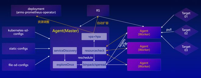 在功能模块中★■■◆■, Master 中都包含服务发现的模块和预抓取模块■★■■◆◆。具体来说,服务发现模块与采集模块的拆分★■◆★,预抓取机制评估采集副本数量■★■,Targets 调度机制实现采集负载均衡,HPA 机制实现采集副本扩容。
