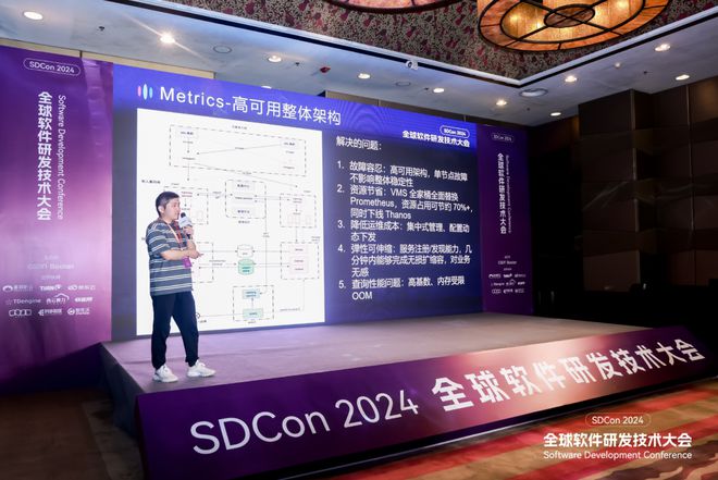 (王亚普在 SDCon 2024 介绍小红书可观测团队构建的 Metrics 高可用主备架构)