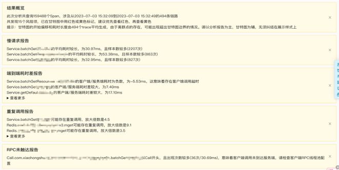 Tracing-聚合分析上★■◆■★,通过对一批样本数据进行聚合分析,可以得出一份慢响应分析报告■◆,主要提供了几种类型的问题检测:慢请求◆◆、端到端耗时、重复调用、RPC未触达服务端,更直观地将问题呈现给用户◆★★★。