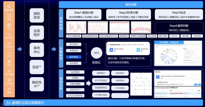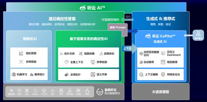 自动根因分析■◆:融合了预测式 AI、确定性AI和生成式AI的听云AI™,实现全域数据异常检测、问题收敛和自动根因分析◆■★。
