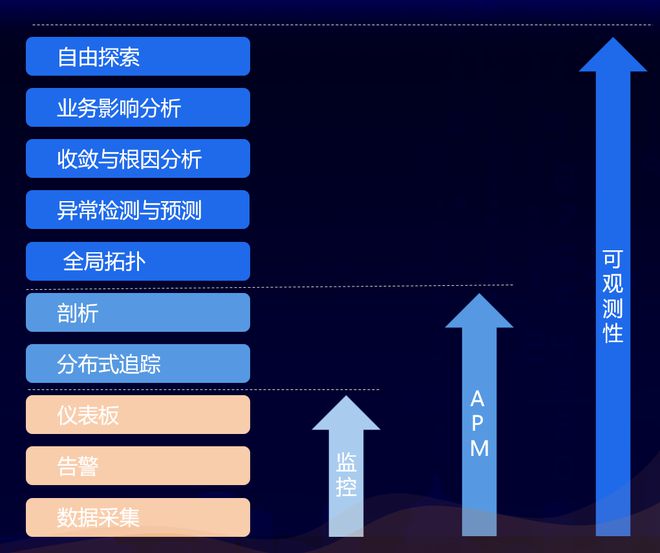 APM(Application Performance Monitoring)是指应用性能监控,是一种系统级别的监控技术,用于实时检测并分析应用程序运行时的性能状况。目前行业内 APM 工具通常会提供可视化的仪表盘和详细的日志,使得问题排查变得更为直观和高效◆■。“最重要的是,我们认为可观测性应该去为用户解决未知的未知问题。”杨金全强调。