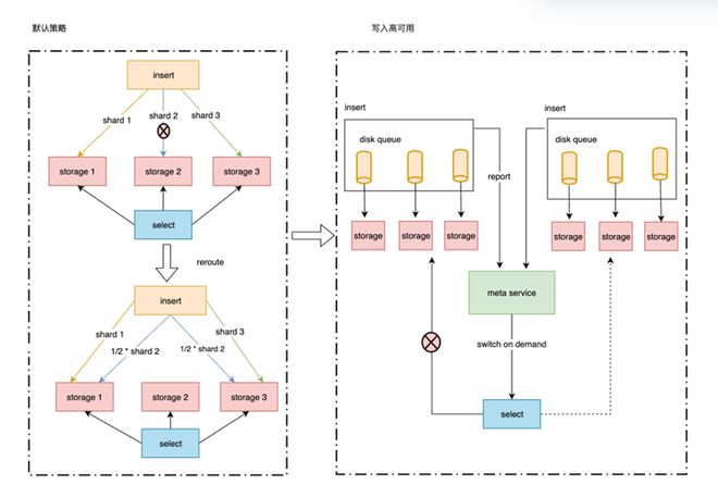 在 Metrics 写入与查询高可用上,做到了主备双活◆■■★★★,即双采双写,同一时间窗口相同指标存储去重★■★■;负载均衡■◆★★◆:禁用 reroute 机制,按实例名 Hash 将相同时间序列写入同一个存储节点★◆◆■,同时引入本地持久化队列应对存储节点故障情况■■■★◆★;容灾切换:数据积压情况上报 meta service,超过积压阈值自动切换集群副本。