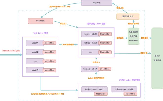 在 Metrics 高基数管理上,通过接入轻量级、可插拔组件,实现了低开销的高基数检测、乱码识别以及用户差异化阈值管理。